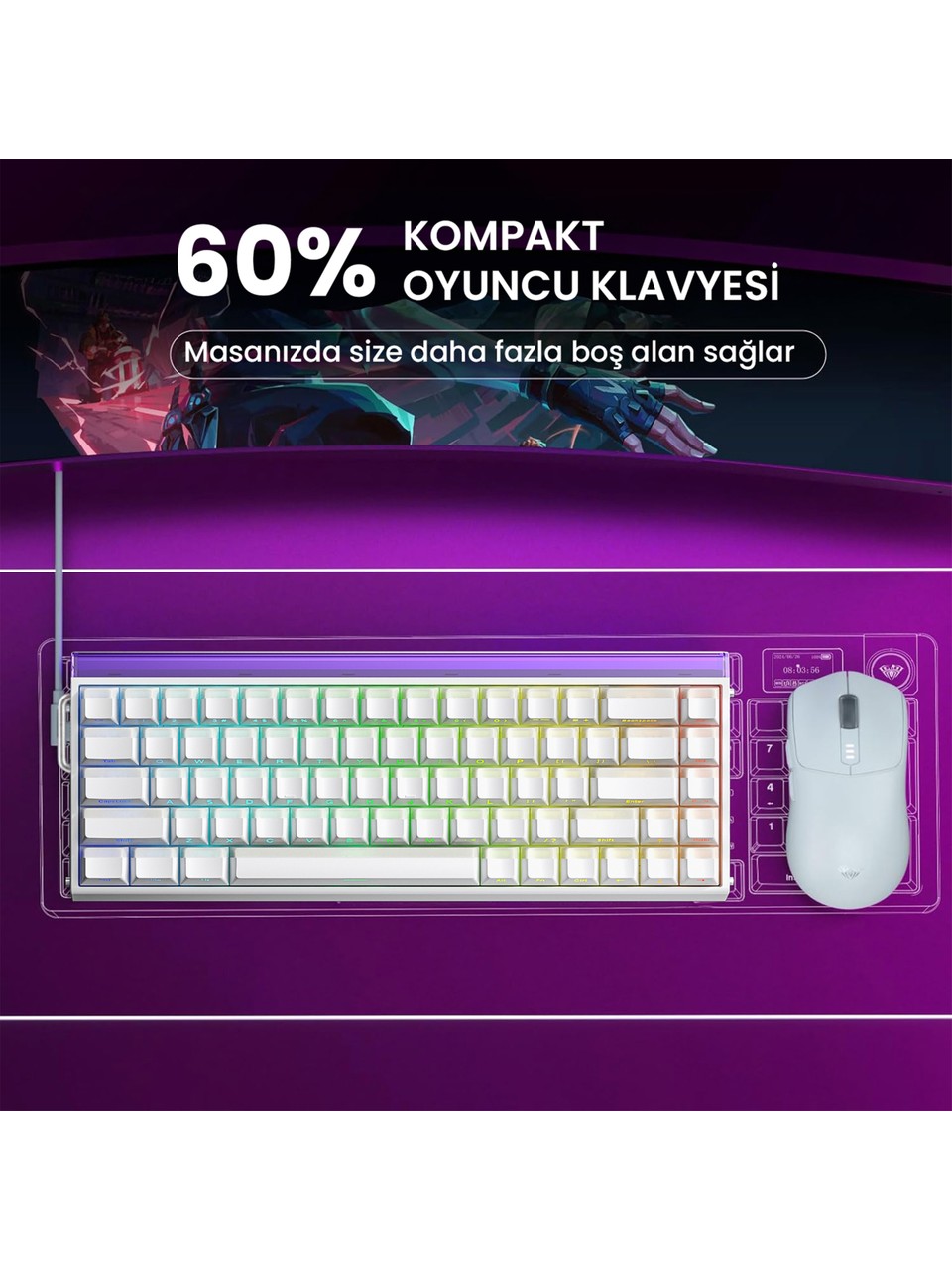 %65 Layout (68 Tuş): Numpad yoktur, yön tuşlarını korurken masanızda fare için geniş bir alan bırakır.