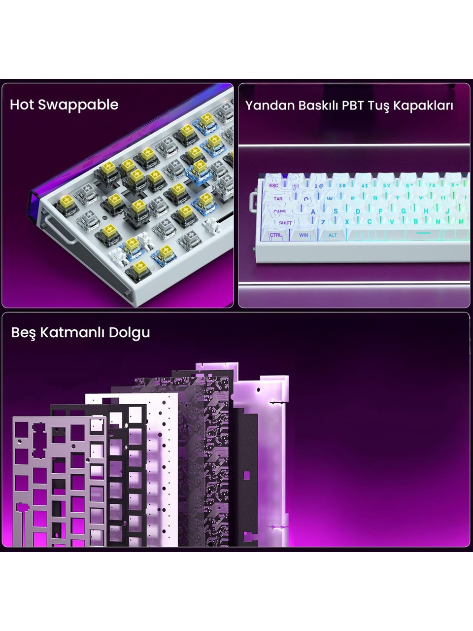 Hot-Swap: Switchleri lehim gerektirmeden kolayca çıkarıp değiştirebilirsiniz (Ancak sadece uyumlu manyetik switchlerle).