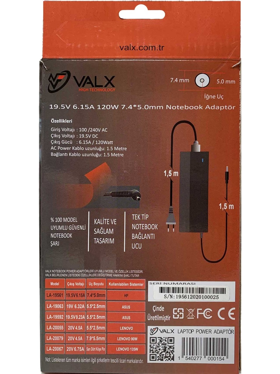 Valx LA-19561, 120W gücünde ve geniş bir dizüstü bilgisayar yelpazesiyle uyumlu olacak şekilde tasarlanmış "universal" (evrensel) bir adaptördür. Özellikle yüksek güç gereksinimi olan performans serisi veya oyuncu laptopları için tercih edilen bir modeldir.